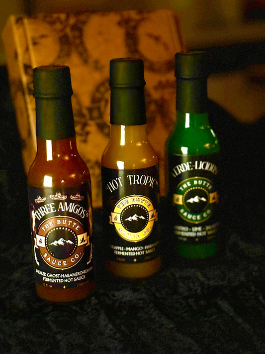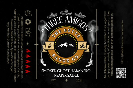 "Three Amigos" Craft-Fermented Applewood-Smoked Reaper, Ghost, Lime and Peppercorn Sauce / 5 oz. bottle by The Butte Sauce Co.